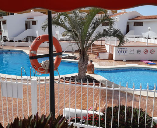 Die vor Kurzem renovierte Wohnung befindet sich in der Anlage Ocean Park, im Zentrum von San Eugenio, an der Costa Adeje, und verfügt über ein Wohnzimmer mit amerikanischer Küche, ein Badezimmer, ein Schlafzimmer und eine Terrasse mit Poolblick.